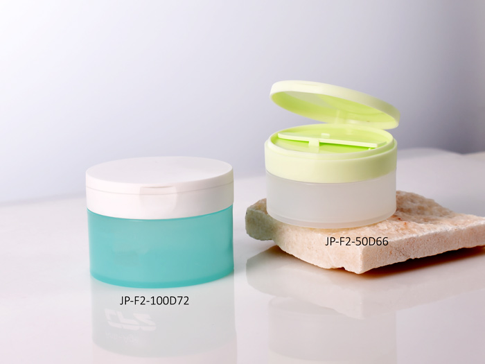 Here are empty, eco-friendly PP flip cosmetic jars with spatula. They have a frosted look and thick walls. Our flip cosmetic jars wholesale and custom available for brands. They are perfect for packaging facial cleansing balms and body butter.