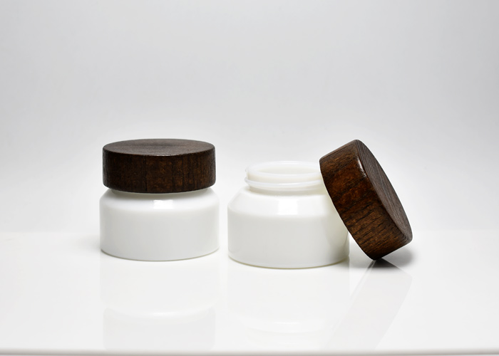 JG-X31-50, Ultraviolet White Glass Jars with wooden lids for face cream
