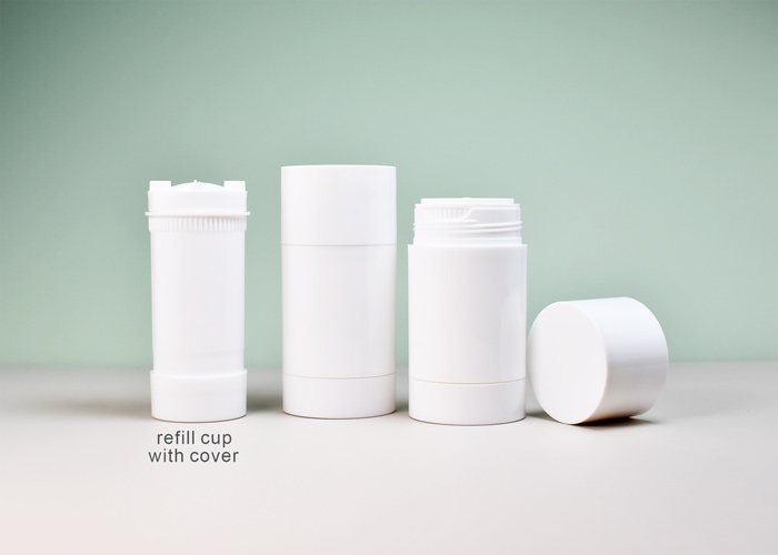 Plastic deodorant container made of eco-friendly PP, with refillable design, great for beauty and personal care formulations like beauty balms.