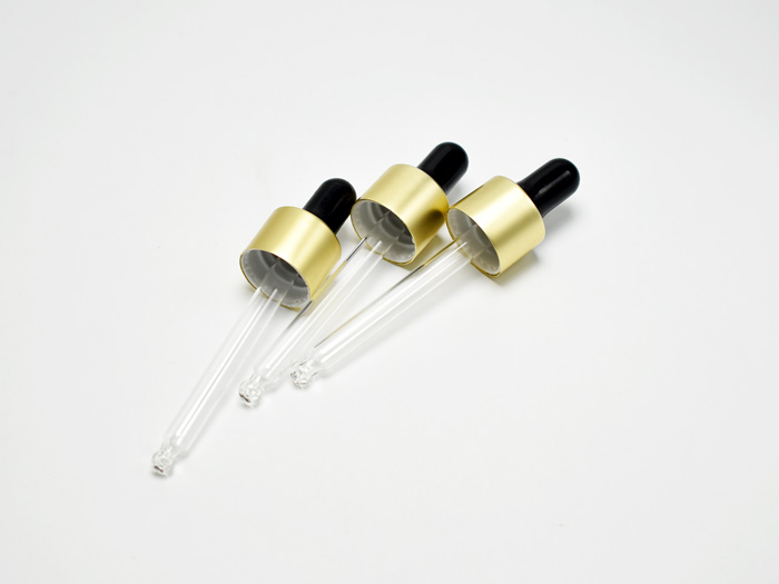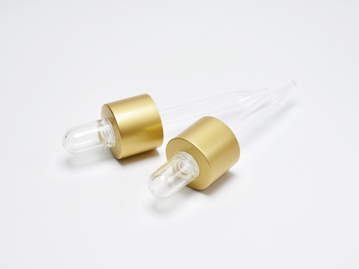 The plastic dropper cap assembled with an aluminum sheathed collar, as premium dropper packaging solutions for skincare serum and oils. Customizable & wholesale available.